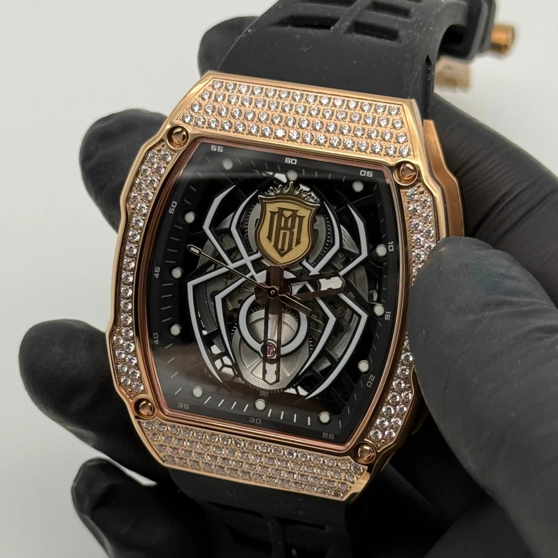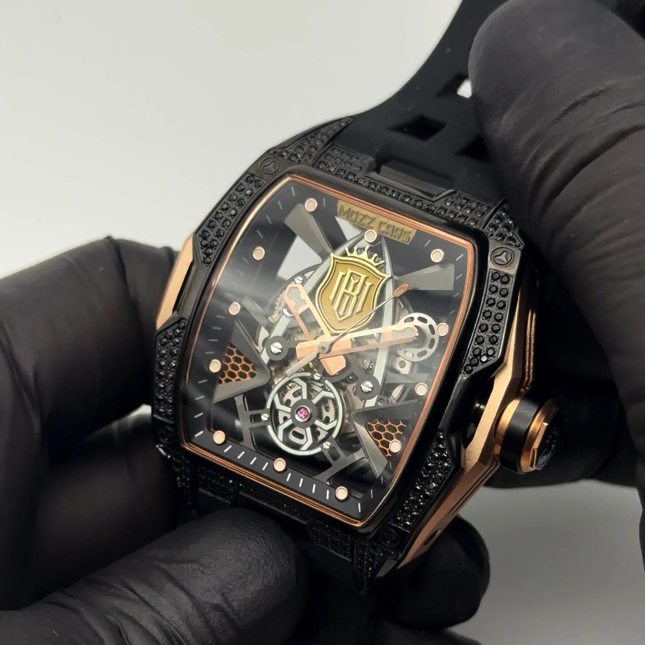 The concept behind the Barugzai private label watch was to translate the brand's signature aesthetic into horological form. A monochrome palette with polished steel elements reflects Barugzai's vehicle finishes, enriched by the use of gold accents contrasted with black to align with the client’s brand aesthetic. Each watch has hand-encrusted stones and the subtle customisation throughout the timepiece elevates its exclusivity. Designed not just to complement, but to enhance the luxury car ownership experience, the watch brings brand alignment to the wrist.